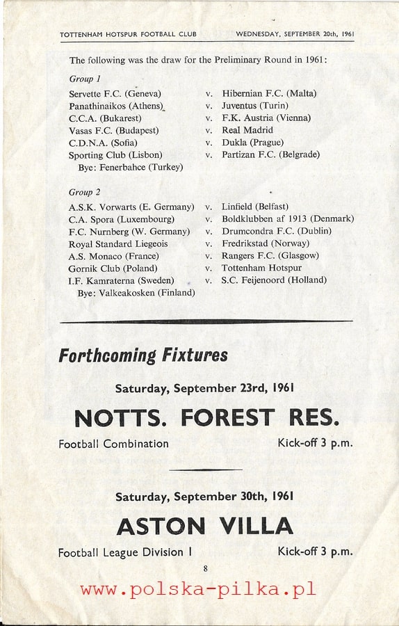 Powyższe źródła-cytaty pochodzą z programu meczowego: Tottenham Hotspur - Górnik Zabrze z 1961 roku, który został wydany przez Tottenham Hotspur. Program pochodzi z prywatnej kolekcji Grzegorza Pawłowskiego.