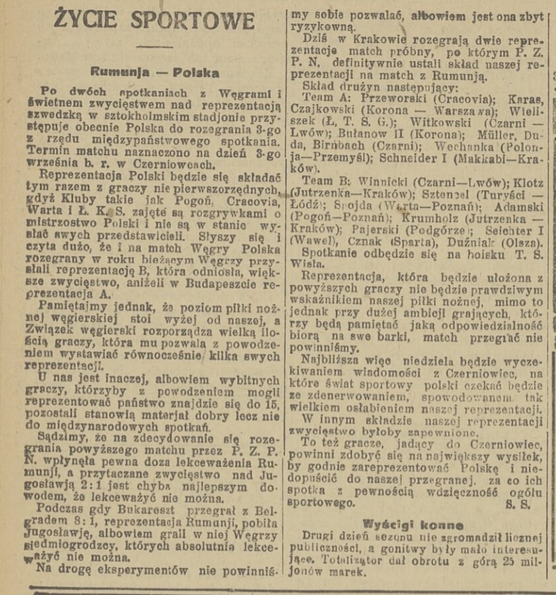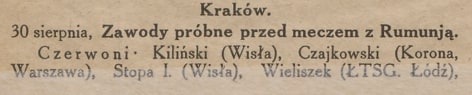 30 sierpnia 1922, Kraków (stadion Wisły), mecz towarzyski