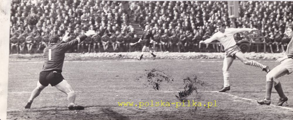 Kazimierz Deyna strzela swojego pierwszego gola w reprezentacji. Fot. W. Klag/HistoriaWisly.pl