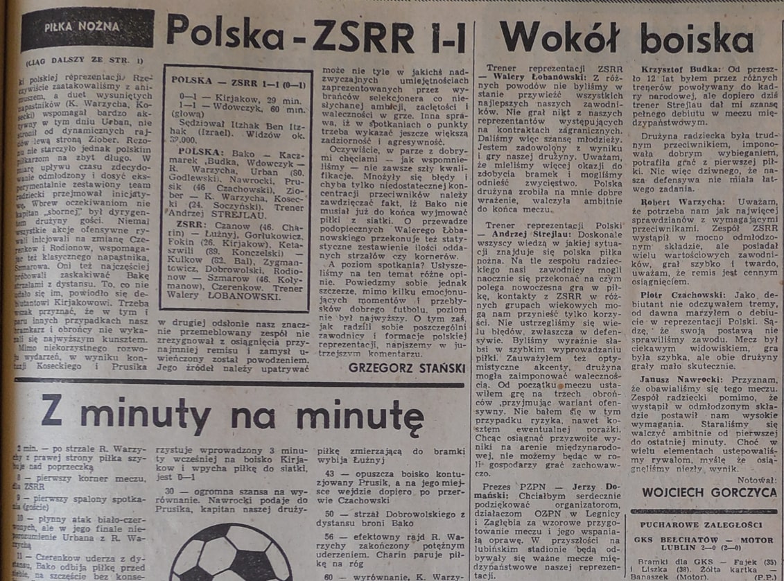 0-1 – Siergiej Kirjakow (29), 1-1 – Dariusz Wdowczyk (60)