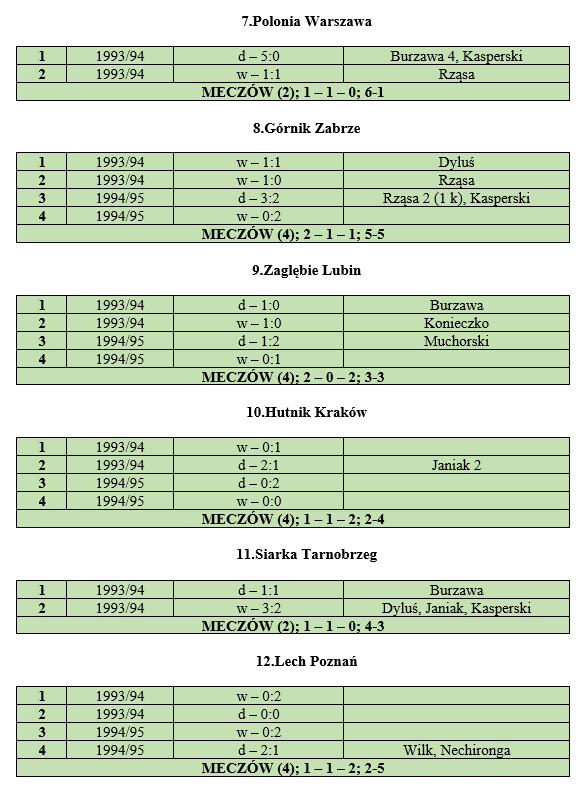 Bilans w ekstraklasie: |