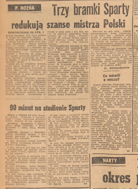 Sparta Praga – Górnik Zabrze 3:0 (1:0)