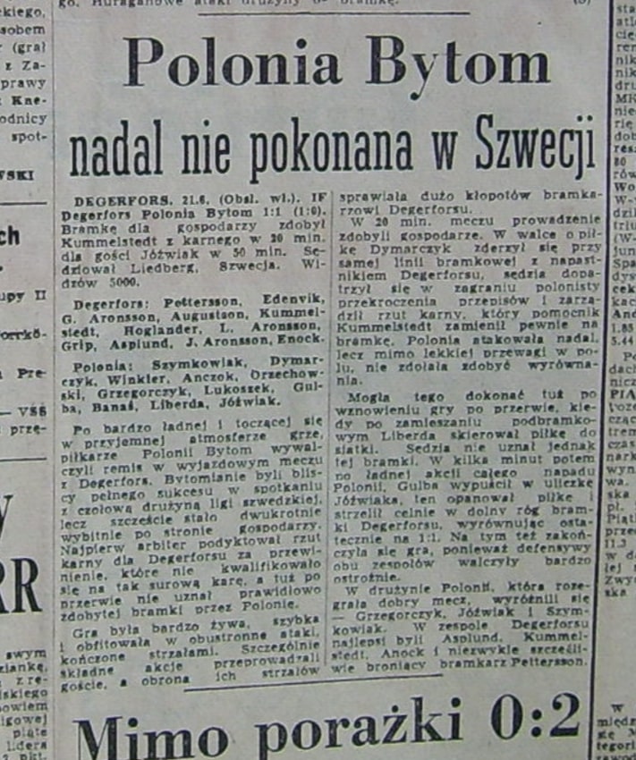 21.06.1964: Degerfors IF – Polonia Bytom 1:1